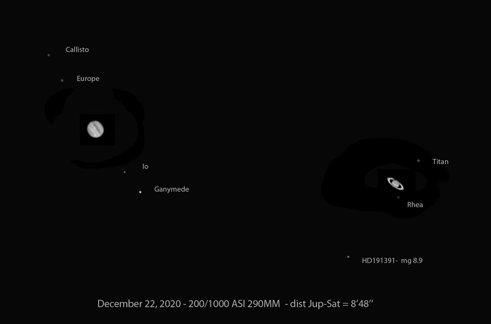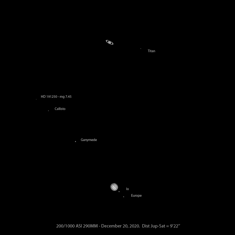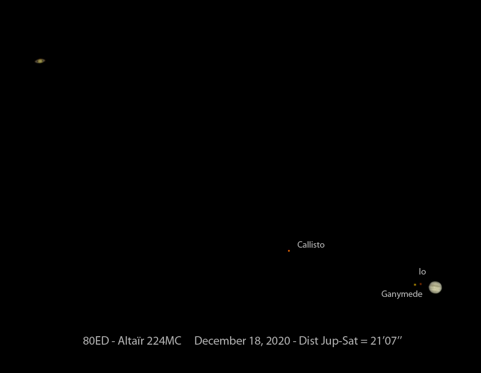 Jupiter - Saturn, December 17, 2020 - FL=600mm - dist Jup-Sat=27'50''