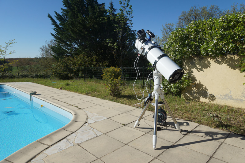 - Télescope Newton TS Optics UNC 200x1000. Acquis fin 2017, cet instrument possède une mécanique et un porte oculaire de bien meilleure qualité que le GSO. Le tube en carbone est plus léger et moins sujet à la dilatation
